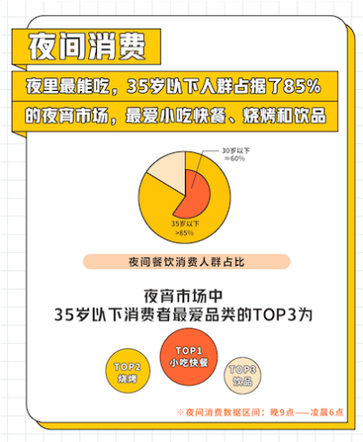 夜間消費(fèi)在周末餐飲消費(fèi)中備受年輕人青睞?!?020周末餐飲堂食消費(fèi)趨勢洞察》顯示,35歲以下群體是周末夜間消費(fèi)的主力,占比近九成,且最愛小吃快餐、燒烤和飲品三大品類。
