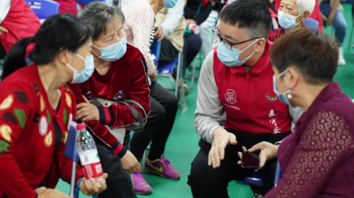 (志愿者一對(duì)一解答老人問(wèn)題)