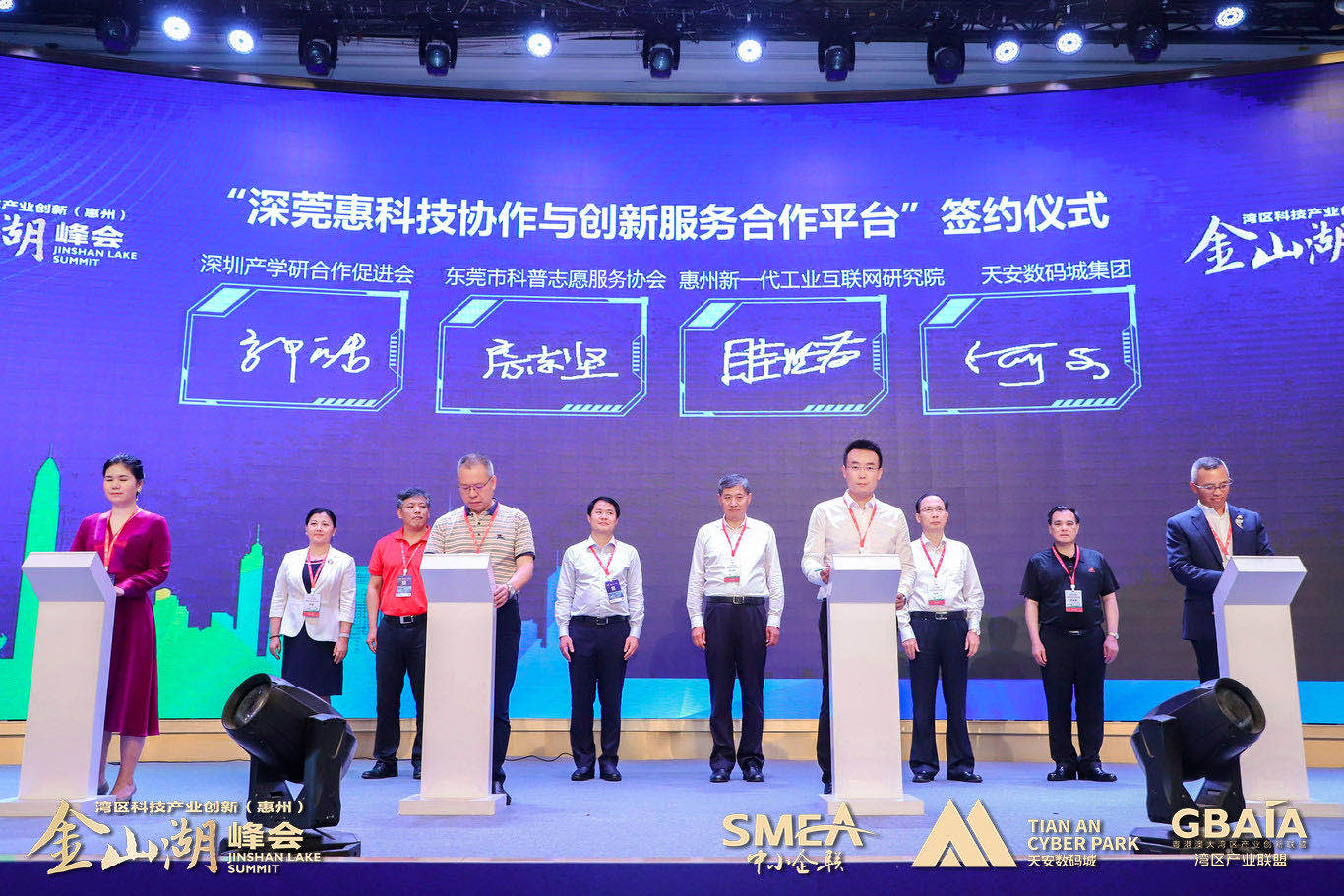 值得一提的是,在本屆峰會(huì)上,在一眾嘉賓的共同見證下“深莞惠科技協(xié)作與創(chuàng)新服務(wù)合作平臺(tái)”順利簽約,《灣區(qū)產(chǎn)業(yè)聯(lián)盟(惠州)科技創(chuàng)新展示中心》正式啟動(dòng)。
