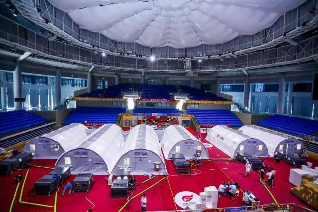 從5月27號凌晨5時物料進入場館開始,華大團隊在深圳市衛(wèi)健委、鹽田區(qū)衛(wèi)健局、深圳鹽田區(qū)供電局、鹽田體育中心等各部門單位的大力支持和協(xié)調(diào)下,6小時內(nèi)快速搭建起2套、6個艙體的快裝式負壓硬氣膜核酸檢測實驗室(以下簡稱"硬氣膜實驗室"),隨即,鹽田區(qū)搭載了華大智造自動化設備的"火眼實驗室"投入試運行,并在9小時內(nèi)通過專家組評審。