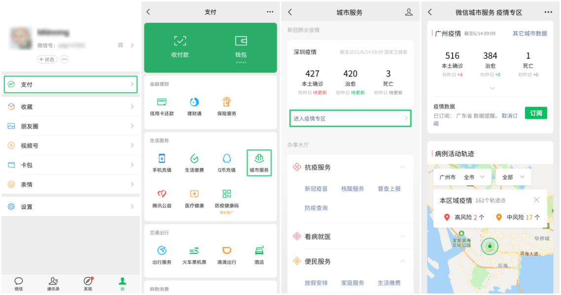 讀特客戶端·深圳新聞網(wǎng)2021年6月16日訊 (記者 田志強)端午期間,為減少疫情傳播風險,廣東市民紛紛響應號召實行就地過節(jié),落實非必要不出省的相關要求。為進一步助力廣東及全國人民抗疫,為市民提供準確疫情資訊及抗疫服務,近日,微信更新城市服務疫情專區(qū),支持查看疫情數(shù)據(jù)、病例活動軌跡、疫情資訊以及接入抗疫服務。全國用戶打開“我-支付-城市服務-疫情專區(qū)”,即可快速觸達各類疫情相關服務。