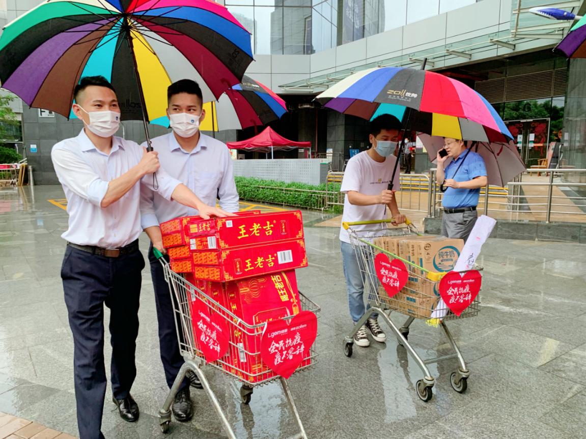 上午9點,深圳正下著暴雨,綠景佐阾虹灣工作人員開始忙碌著“全民抗疫,疫不容辭”公益活動準備工作,各贊助商戶也陸陸續(xù)續(xù)把捐贈的愛心物資,拿到現(xiàn)場,經(jīng)過大家的共同努力現(xiàn)場逐漸成型,靜待抗疫工作者前往領(lǐng)取。