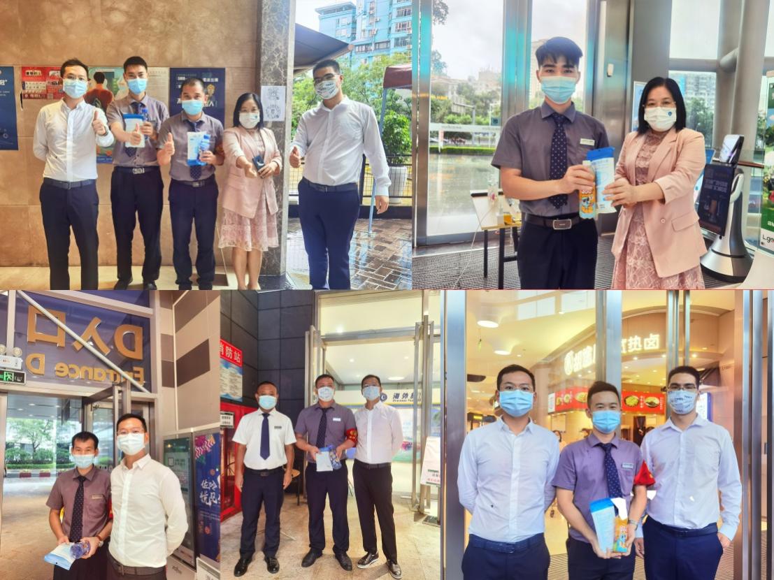 在疫情期間,安保人員作為綠景佐阾虹灣購物中心以及綠景虹灣花園的“安全衛(wèi)士”,也一直默默堅守在工作崗位,配合政府開展一系列防疫措施,努力守護著我們的家園!綠景佐阾虹灣項目總經(jīng)理吳亞男及總經(jīng)理助理王嵩也來到了安保值班現(xiàn)場,為每一位同事送上了愛心物資,感謝他們的努力與付出。