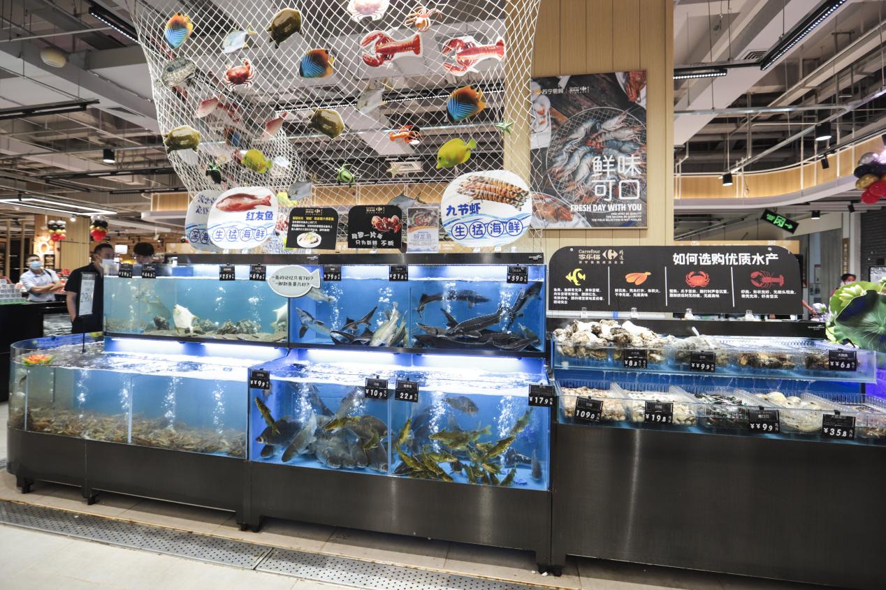 家樂福社區(qū)品質(zhì)生活中心經(jīng)營面積約3000㎡,主打中高端、進口、網(wǎng)紅商品,門店有近15000種商品。