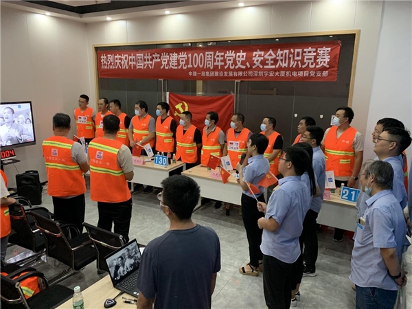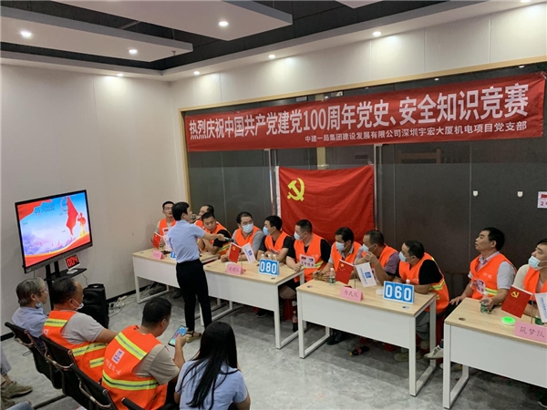 讀特客戶端·深圳新聞網(wǎng)2021年7月30日訊 同心筑夢,百年芳華,為扎實推進黨史學習教育走深走實,創(chuàng)新黨史知識學習方法,濃厚學習氛圍,增強學習興趣,近日,中建一局集團建設(shè)發(fā)展有限公司深圳宇宏大廈機電項目黨支部舉辦以慶祝中國共產(chǎn)黨建黨100周年“學黨史、守初心、保安全、促發(fā)展”為主題的黨史、安全知識競賽。此次活動參賽代表隊是由項目廣大工友組成“忠黨隊”、“愛國隊”、“為民隊”、“筑夢隊”,共計50余人參加了本次活動。