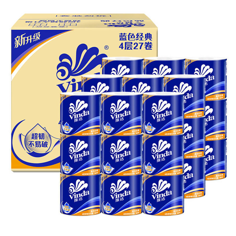 超韌厚實維達(dá)卷紙藍(lán)色經(jīng)典濕水不易破
