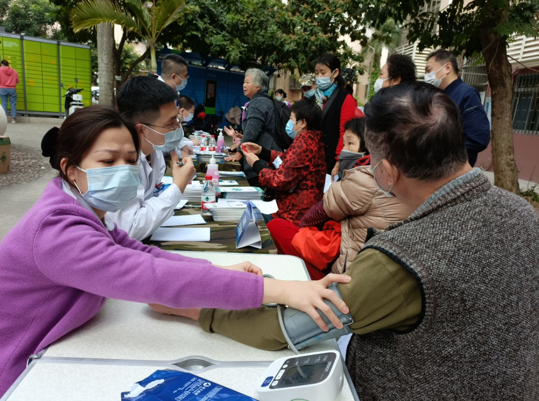 12月19日上午,深圳市人民醫(yī)院疼痛科11名專家與護士攜帶血壓計、血糖儀、聽診器、理療儀等儀器到街道退役軍人服務站開展“愛心義診送健康,為民服務暖人心”關愛退役軍人義診活動。為防范疫情風險,服務站將健康服務分區(qū)域并安排工作人員查驗健康碼、行程碼、測體溫,參與人員須佩戴口罩方能進入活動現(xiàn)場。在服務站門口通風處設置血糖與血壓測量處、專家醫(yī)生坐診處,在老兵活動室開展健康知識講座,在黨建活動室和老兵談心室開展身體理療服務。所有服務同時開展,退役軍人和居民自主決定參與順序,避免扎堆。
