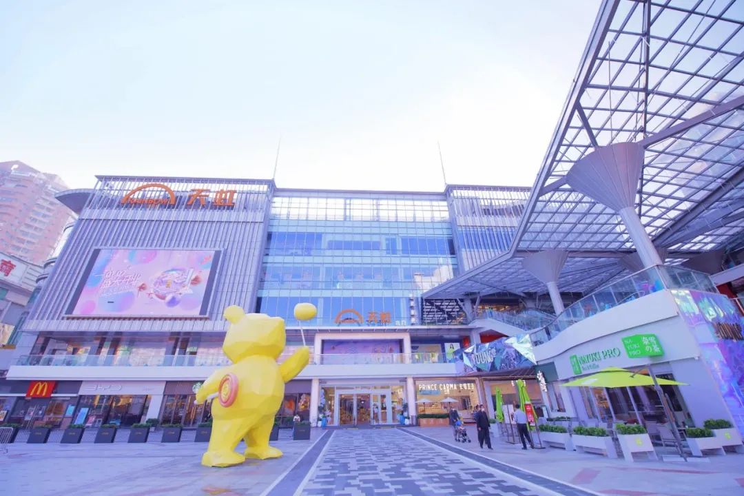 常平天虹購物中心擁有特色十足的盒子+情景主題街區(qū)建筑布局。多首層式設(shè)計(jì),讓顧客可以自由地從不同樓層進(jìn)入商場,打破傳統(tǒng)“盒子”建筑的封閉空間感,使逛街充滿樂趣。購物中心門前的常平首家 IP休閑歡樂廣場,擁有6米高泡泡熊雕塑、燈光音樂噴泉等娛樂設(shè)施,為周邊居民創(chuàng)造一個(gè)可玩、可親、可打卡的戶外體驗(yàn)空間。