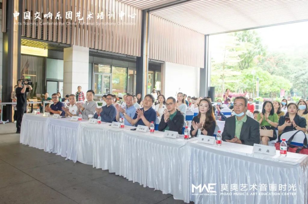 中國交響樂團(tuán)副團(tuán)長尹波、南山區(qū)文化廣電旅游體育局黨組成員、副局長任艷峰、中國交響樂團(tuán)藝術(shù)培訓(xùn)中心主任王曉柯、中國交響樂團(tuán)藝術(shù)培訓(xùn)中心深圳負(fù)責(zé)人韓仕英、華僑城歡樂時光項(xiàng)目負(fù)責(zé)人鄧皋峰、深圳市關(guān)愛行動基金會副秘書長魏平、莫奧藝術(shù)音畫時光校長王婷、莫奧藝術(shù)音畫時光行政總監(jiān)曹克等嘉賓出席了開幕儀式。