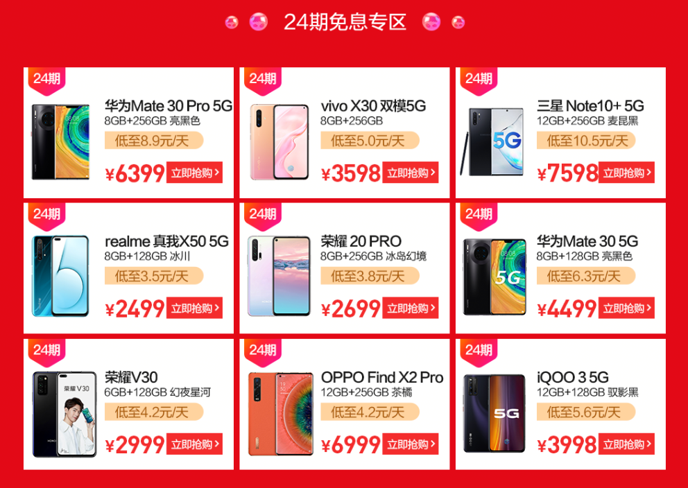 今日,蘇寧5G手機(jī)節(jié)正式迎來(lái)開(kāi)門(mén)紅,開(kāi)啟5G手機(jī)迄今為止最大力度的免息專(zhuān)場(chǎng),5G手機(jī)最低每天只需3.5元即可入手。