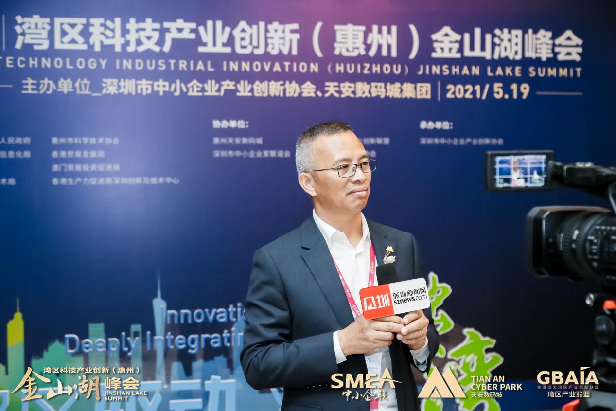 近日,由深圳市中小企業(yè)產(chǎn)業(yè)創(chuàng)新協(xié)會、天安數(shù)碼城集團(tuán)聯(lián)合主辦的“雙區(qū)驅(qū)動·深度融灣”2021首屆灣區(qū)科技產(chǎn)業(yè)創(chuàng)新(惠州)金山湖峰會在惠州市惠城區(qū)康帝國際酒店如期舉行。峰會當(dāng)天,香港生產(chǎn)力促進(jìn)局內(nèi)地附屬公司總經(jīng)理賀俊強(qiáng)出席活動,并接受記者采訪。