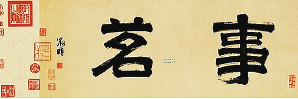 此時(shí),這幅文徵明手書的“事茗”——蒼勁蘊(yùn)藉的隸書橫幅正懸于深圳龍華六度車棧二樓善濟(jì)堂茶禪會(huì)館入門處,作為近日舉行的“事茗——東一書畫雅集”的展題。