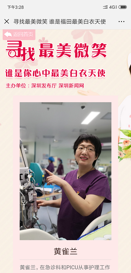 在福田有一群這樣暖心的人,TA們沒有精致妝容,卻有溫暖笑容,沒有華麗衣衫,卻有簡潔大方制服,很少有人能記住TA們口罩下的臉,卻能在TA們的幫助下解決問題。TA們每天傳遞著藥物和器械,卻托舉著每一位患者的健康之夢(mèng)。TA們是誰?TA們就是我們的“白衣天使”們~為迎接2018年“5.12”國際護(hù)士節(jié),弘揚(yáng)南丁格爾救死扶傷的人道主義精神,深圳新聞網(wǎng)聯(lián)合深圳發(fā)布廳,在福田區(qū)范圍內(nèi)開展“誰是你心中最美白衣天使”評(píng)選活動(dòng)