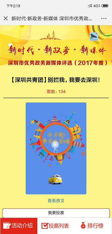 作為中國"最互聯(lián)網(wǎng)城市〃,深圳近年來大力建 設(shè)政務(wù)新媒體平臺(tái)矩陣,不斷建立健全工作機(jī)制,搭 建起為市民服務(wù)的新渠道、新平臺(tái),涌現(xiàn)出許多優(yōu)秀 的政務(wù)新媒體。廣大市民網(wǎng)友,有哪些政務(wù)微信么, 讓你"欲罷不能〃,有哪位小編讓你〃刻骨銘心〃, 有哪些作品讓你"秒轉(zhuǎn)秒贊"?請(qǐng)為他們投上寶貴一 票吧!本次投票活動(dòng)作為"新時(shí)代新政務(wù)備體"—— 深圳市優(yōu)秀政務(wù)新媒體評(píng)選(2017年度)活動(dòng)的重要 組成部分,其結(jié)果將作為專家評(píng)審類獎(jiǎng)項(xiàng)評(píng)選的重要 參考細(xì),權(quán)重占比50%。