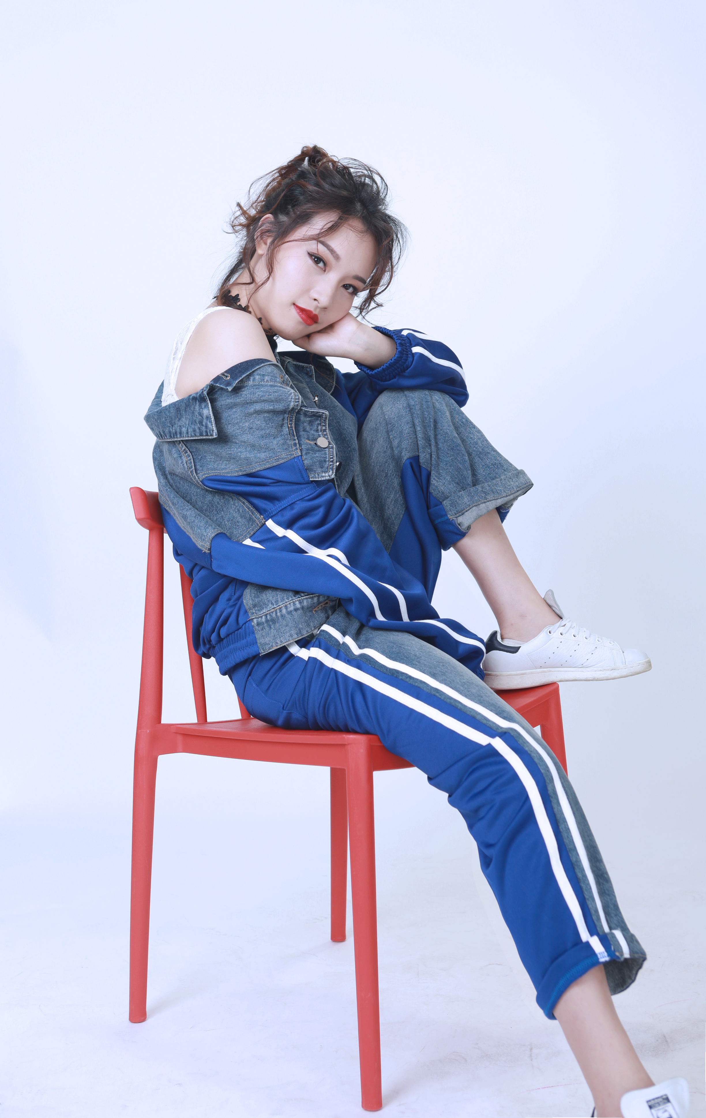 換上第二套造型的芷苑小姐姐。這次是街頭休閑風(fēng),牛仔材質(zhì)混搭了經(jīng)典校服風(fēng),再踩上一對stan smith,個性又復(fù)古,讓你輕易不敢惹。