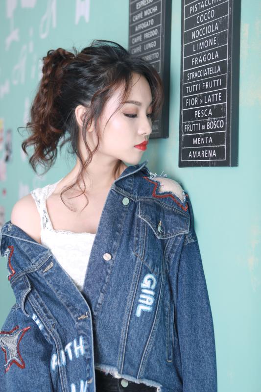 改造后的芷苑小姐姐大走街頭風(fēng),一頭卷發(fā)胡亂綁成高馬尾,搭配星星破洞oversized牛仔外套&漸變牛仔skinny,碰撞上大紅唇色,一改之前的乖巧模樣。