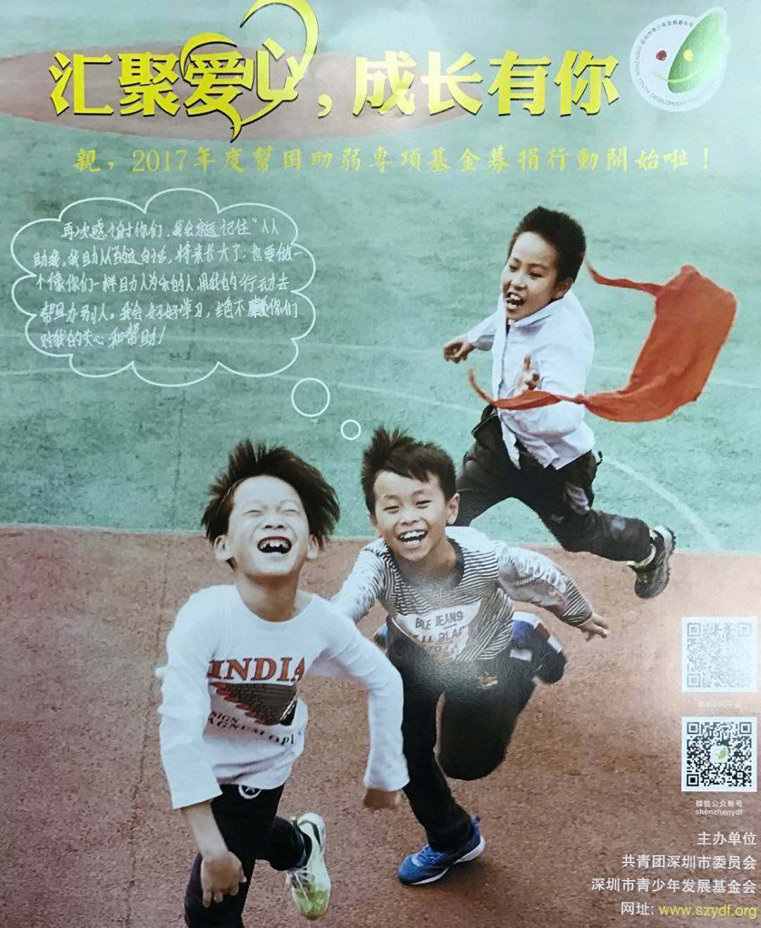 為關(guān)心關(guān)愛青少年健康成長(zhǎng),營(yíng)造樂觀、積極向上的社會(huì)氛圍,深圳農(nóng)商行發(fā)起了“匯聚愛心成長(zhǎng)有你”的公益愛心活動(dòng),號(hào)召全行向2017年度深圳市青少年幫困助弱專項(xiàng)基金進(jìn)行愛心捐助?;顒?dòng)得到了全行上下的大力支持,全行共募集善款人民幣221156.66元。青基會(huì)對(duì)深圳農(nóng)商行員工的善舉表示了深深的謝意,并期待與深圳農(nóng)商行開展更廣泛、更深入的公益活動(dòng)合作。