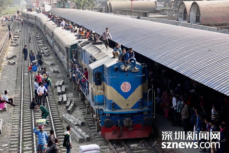孟加拉的“瘋狂火車” 民眾為省錢蹲在兩節(jié)車廂的掛鉤處