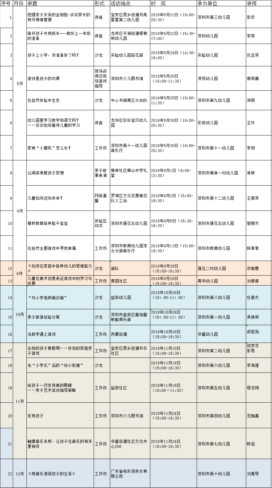 第十一屆“育兒講堂”排期表