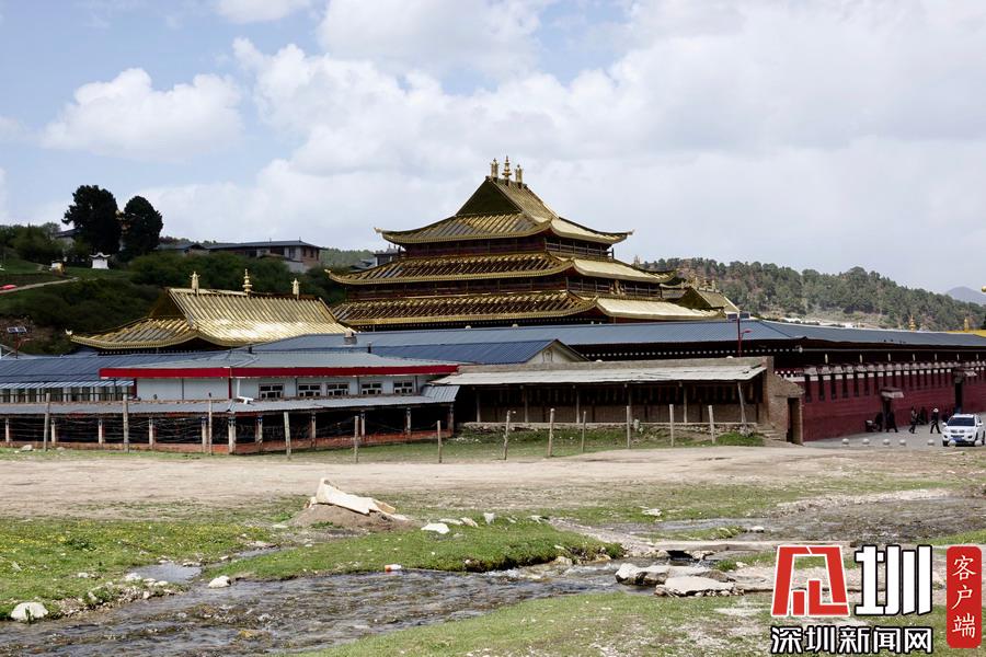 鎮(zhèn)內(nèi)的主要街道分屬兩省管轄。南北兩端,幾百米之內(nèi),有兩座壯觀宏大的寺院建筑群隔“江”(白龍江源流)相望,甘肅境內(nèi)是“賽赤寺”。四川境內(nèi)有“格爾底寺”。李仁奇攝