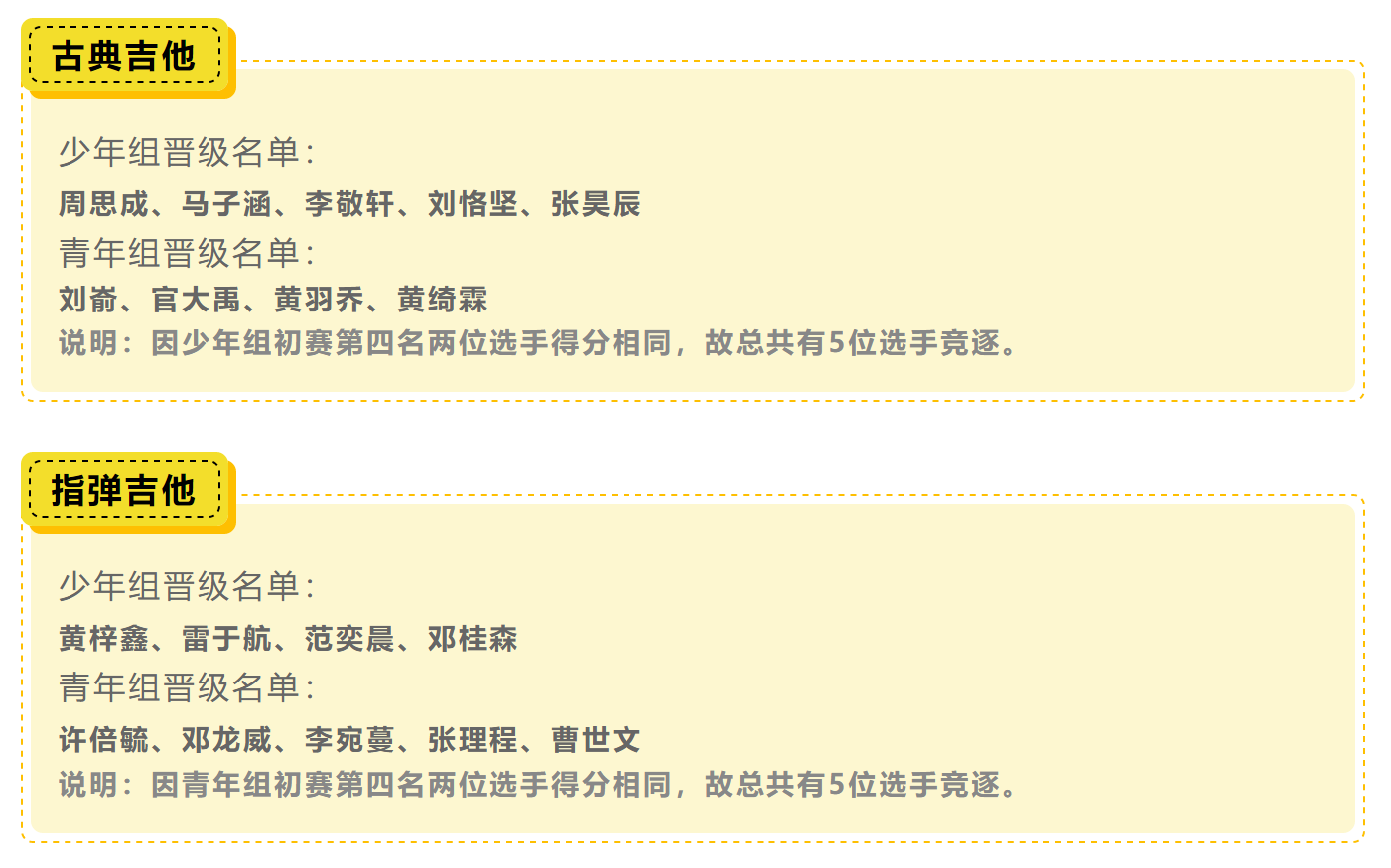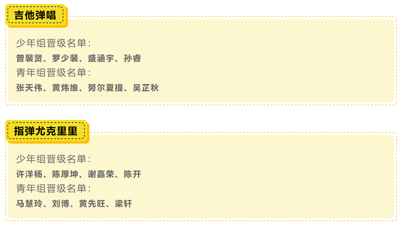 首屆“前海吉他&尤克里里大賽”,在短短一個(gè)月內(nèi)收到了全國各地愛好者的踴躍報(bào)名!經(jīng)過了專業(yè)評(píng)委們對(duì)初選綜合評(píng)分,最終在激烈的角逐下,組委會(huì)篩選出八個(gè)組別共34位選手入圍決賽!