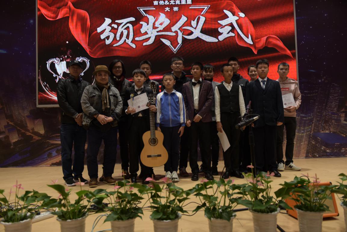 圖:指彈尤克里里組獲獎選手與評委嘉賓合影