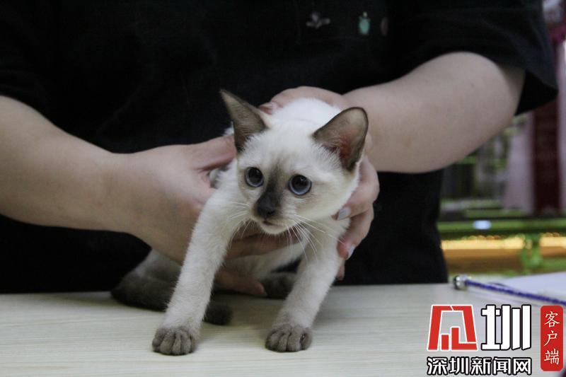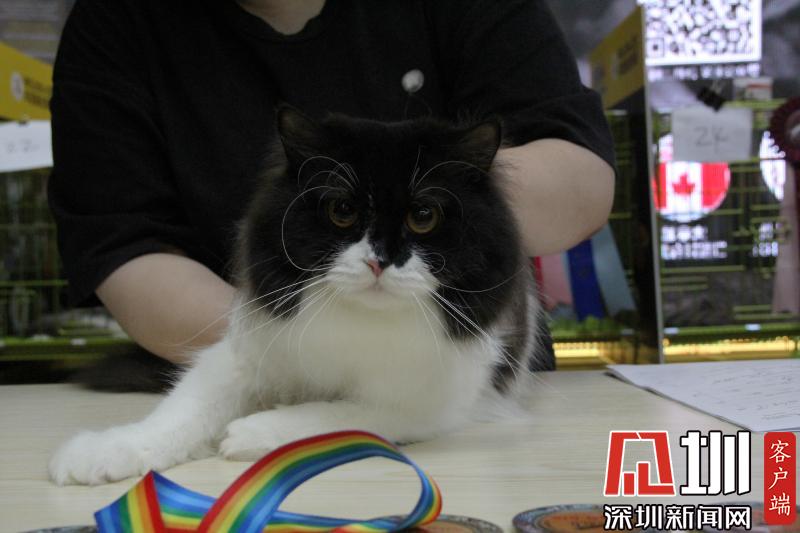 一只貓咪正在被裁判進(jìn)行評(píng)估。