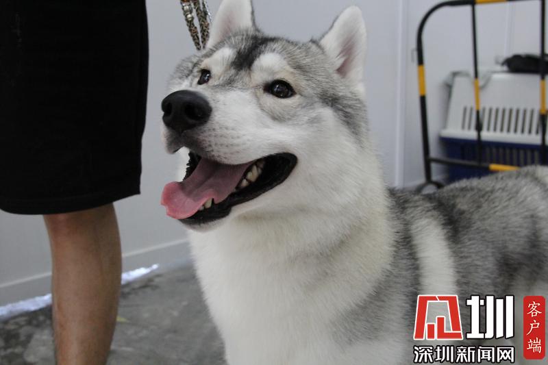 一只哈士奇準(zhǔn)備參加2020年CKU深圳全犬種冠軍展。