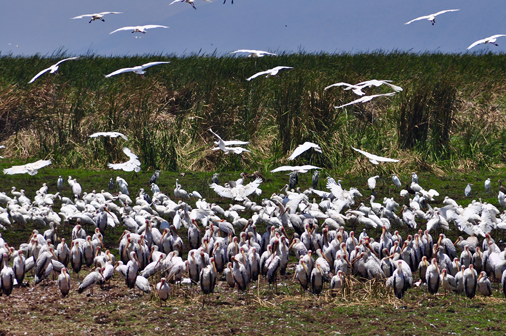 每年不同時期,紅鶴、鵜鶘、鸕鶿、火烈鳥等大型鳥類云集湖區(qū),綿延數公里,十分壯觀。李仁奇 攝