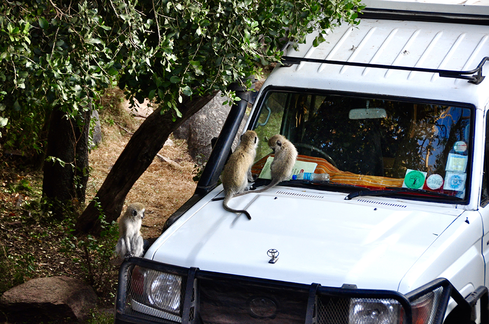在一些酒店里,猴子,鼴鼠等動(dòng)物進(jìn)入客人房間或大堂、庭院覓食是很常見的事情,也從來沒有人傷害它們。李仁奇 攝