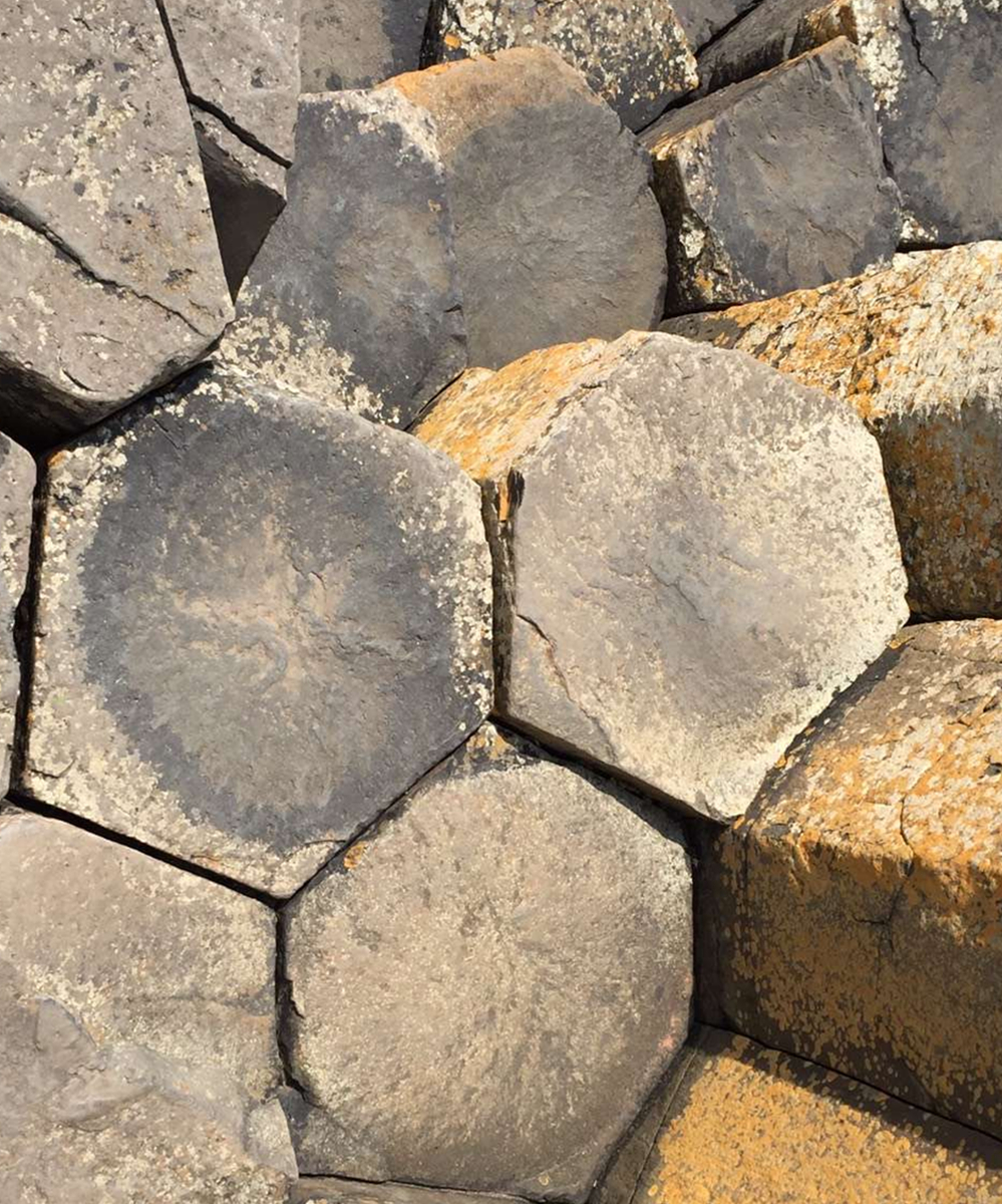 約五千萬年前,在今天蘇格蘭西部內(nèi)赫布里底群島一線至北愛爾蘭東部火山非常活躍,一股股玄武巖巖熔流從裂隙的地殼中涌出,隨著灼熱的熔巖冷卻收縮,結晶的時候,開始爆裂呈規(guī)則的六邊形形態(tài)。李仁奇 攝