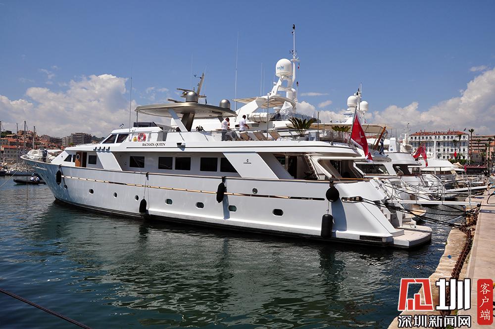 圖為??吭陔娪肮?jié)場館旁游艇碼頭的豪華游艇。李仁奇 攝