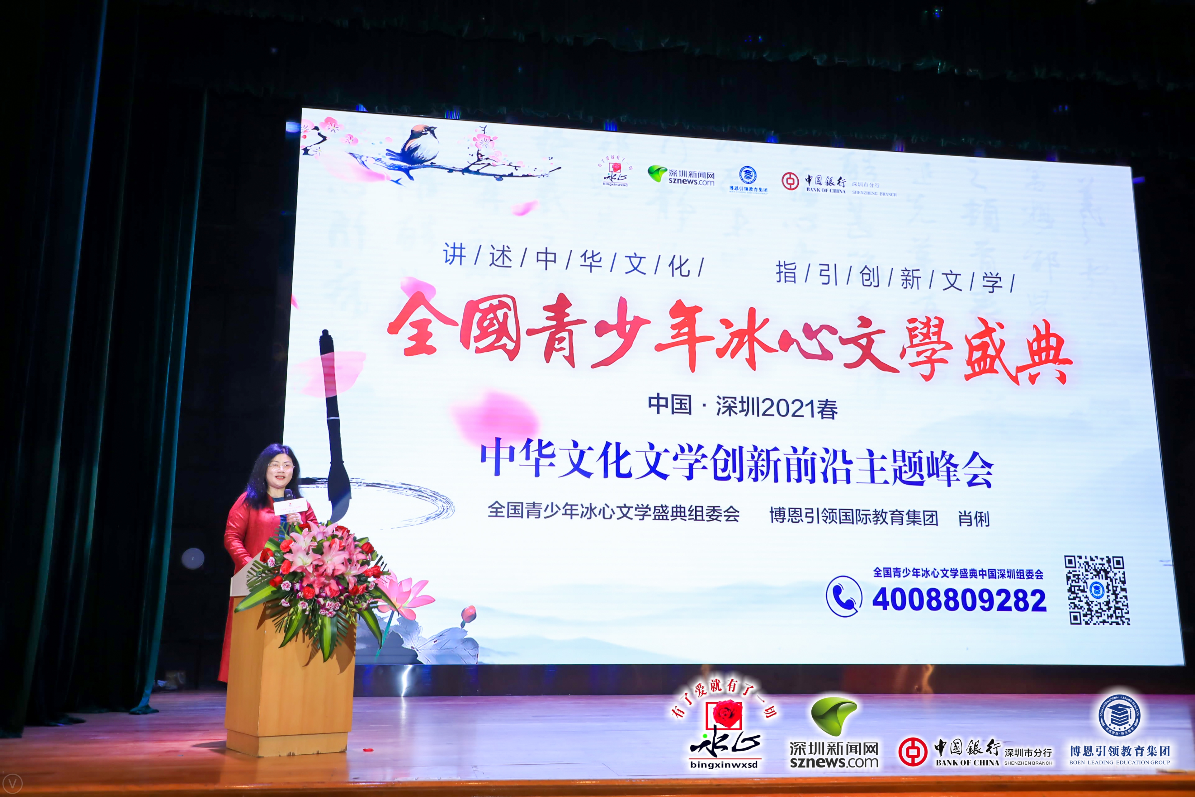 全國青少年冰心文學(xué)盛典中國·深圳組委會、博恩引領(lǐng)教育集團負(fù)責(zé)人肖俐致辭
