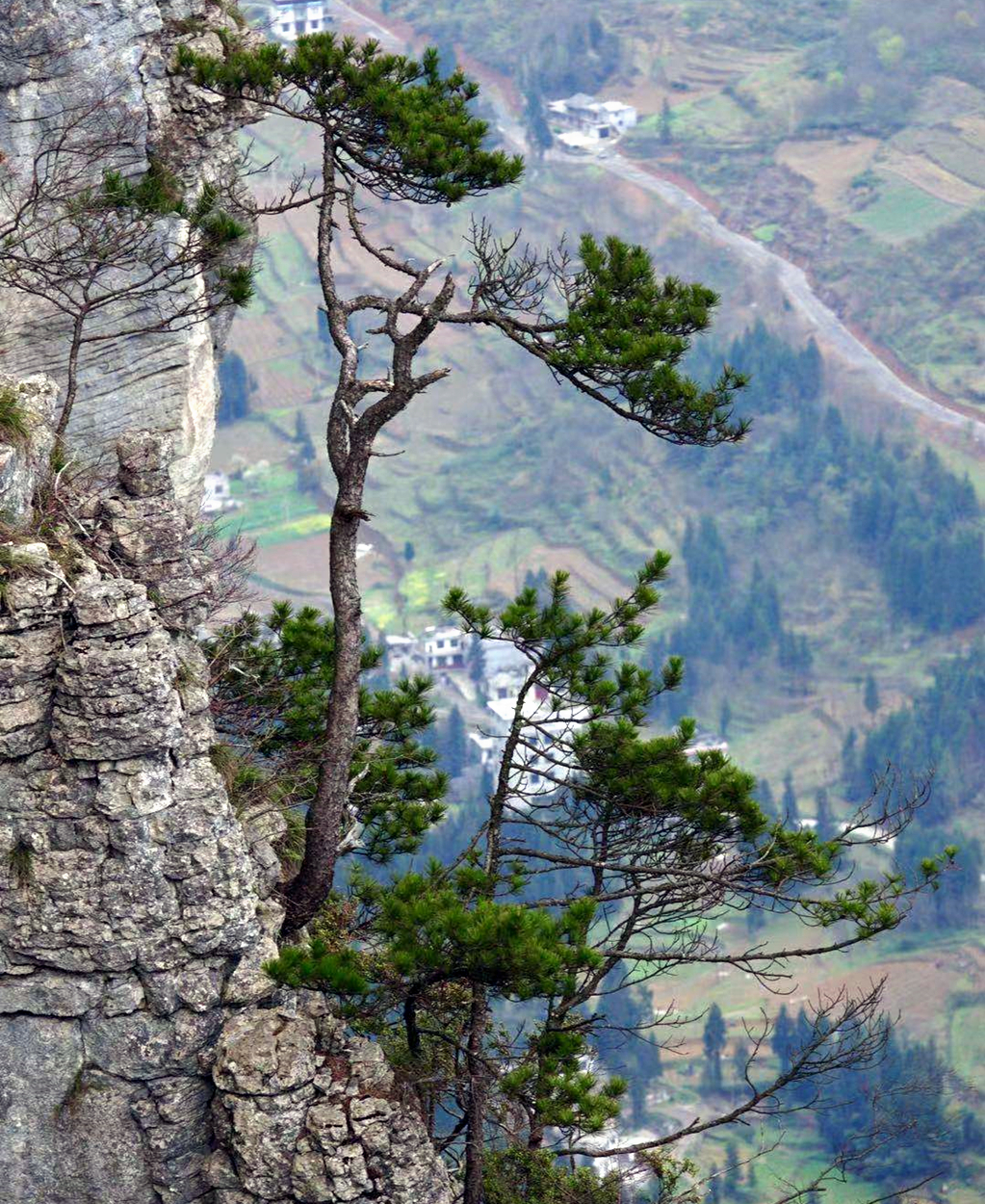 生長在山崖邊的松樹,沿壁而生,枝葉向外微微傾斜。李仁奇 攝
