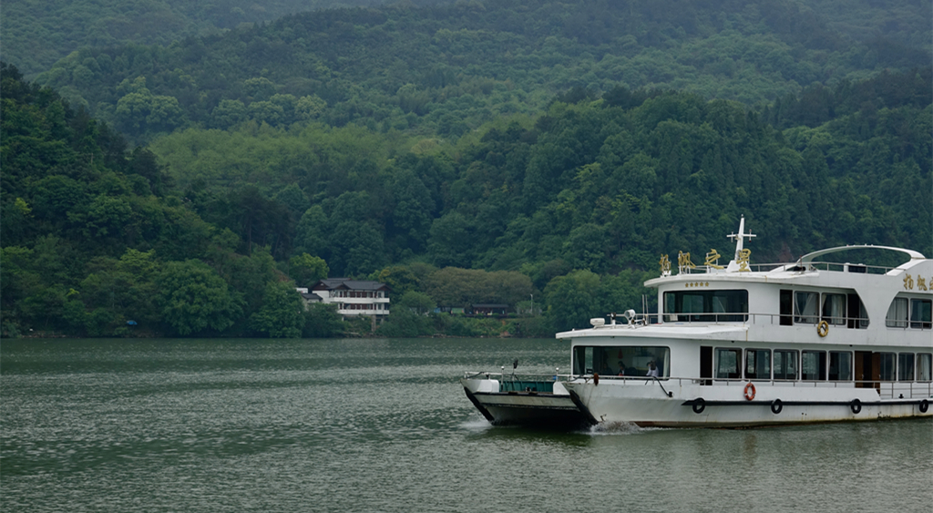 乘船在這段以《富春山居圖》聞名的水路上揚帆遠(yuǎn)航,兩岸的青山峽谷迤邐如畫,眾多人文古跡點綴其間,頗有幾分“人在畫中游”的感覺。李仁奇 攝
