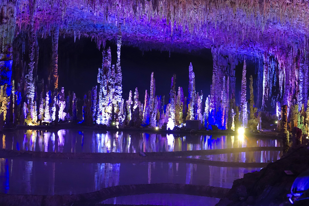 石花、石乳、石筍、石柱、石幔、石瀑布、石梯田等洞內(nèi)沉積物種類繁多;似仙闕樓臺,若瑤池勝景,如海市蜃樓,讓人目不暇接。李仁奇 攝
