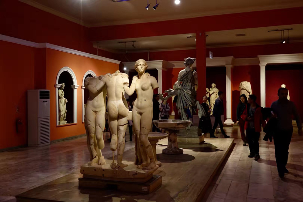 大量公元2—3世紀(jì)的人體雕塑令人目不暇接,這個(gè)時(shí)期也是該地區(qū)歷史發(fā)展中最為繁盛的階段。館內(nèi)陳列著眾多古希臘古羅馬眾神的雕像,號(hào)稱“萬神殿”。這些雕像是從公元8世紀(jì)的古墓里面發(fā)掘出來的,包括眾神之神宙斯、天后赫拉、智慧女神雅典娜、愛情與美麗女神阿芙羅狄忒、太陽神阿波羅、大力神赫拉克勒斯等。李仁奇 攝
