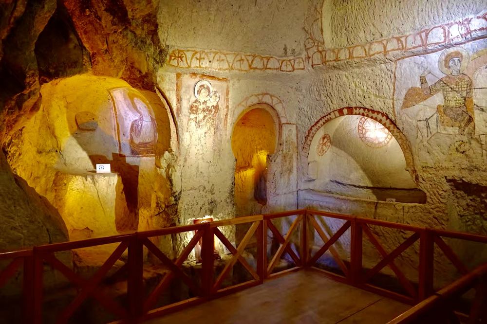 壁畫一般是《圣經》中的人物畫像,一部分仍色彩鮮明,清晰可見。李仁奇 攝