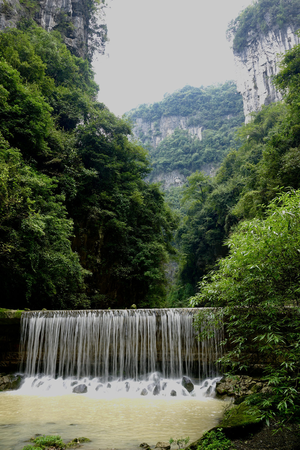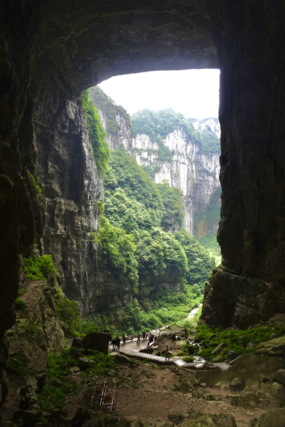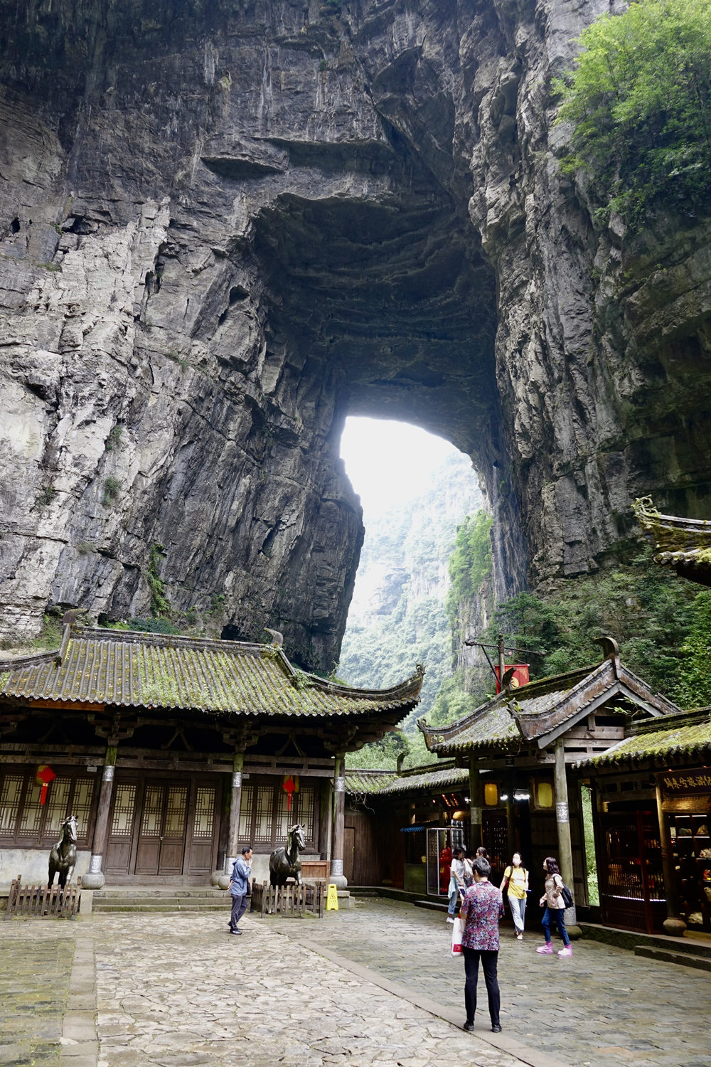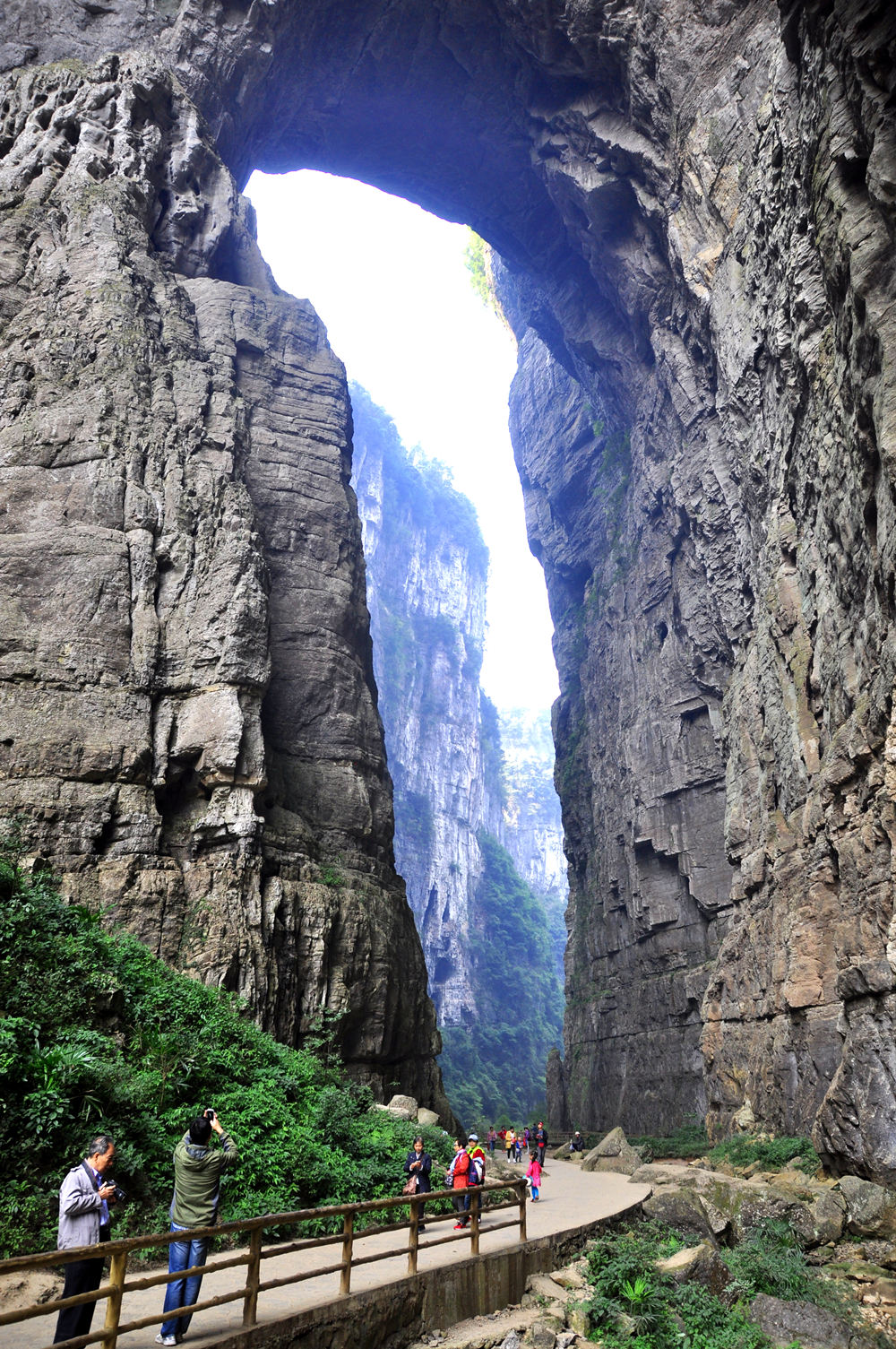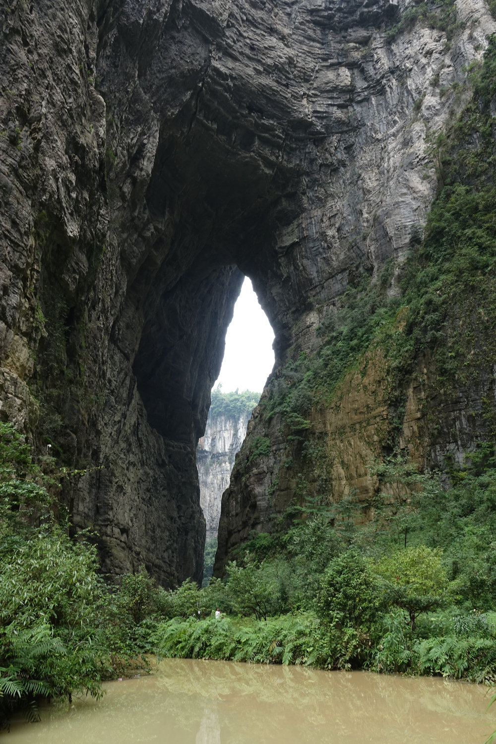 天龍橋?yàn)檠蛩訊{谷上的第一座天生橋,又名頭道橋,高大厚重、磅礴氣勢(shì),以雄壯稱奇。橋高235m,橋厚150m,平均拱橋高度96m。拱孔跨度20-75m,平均34m,橋面寬度147m。李仁奇 攝