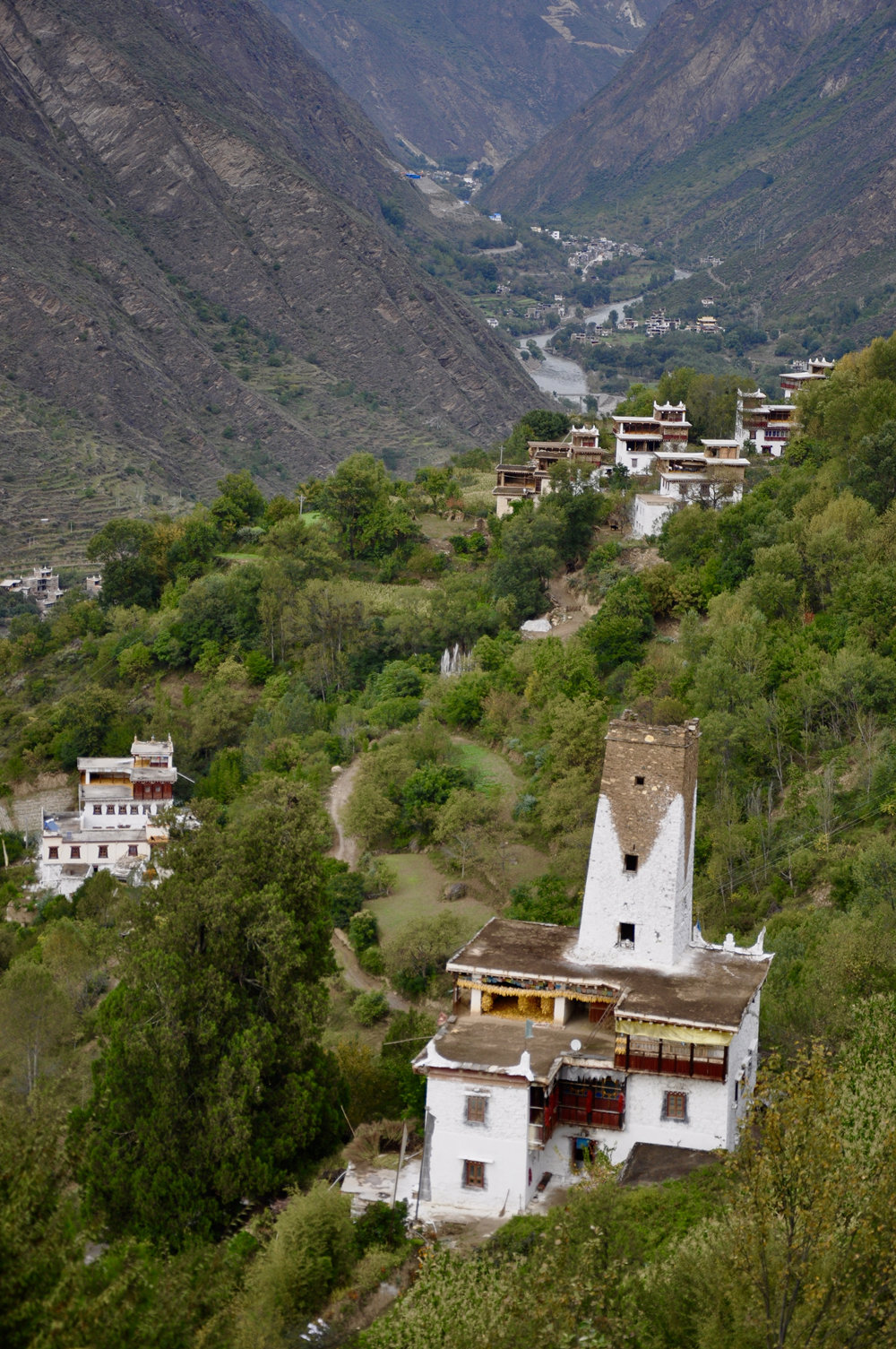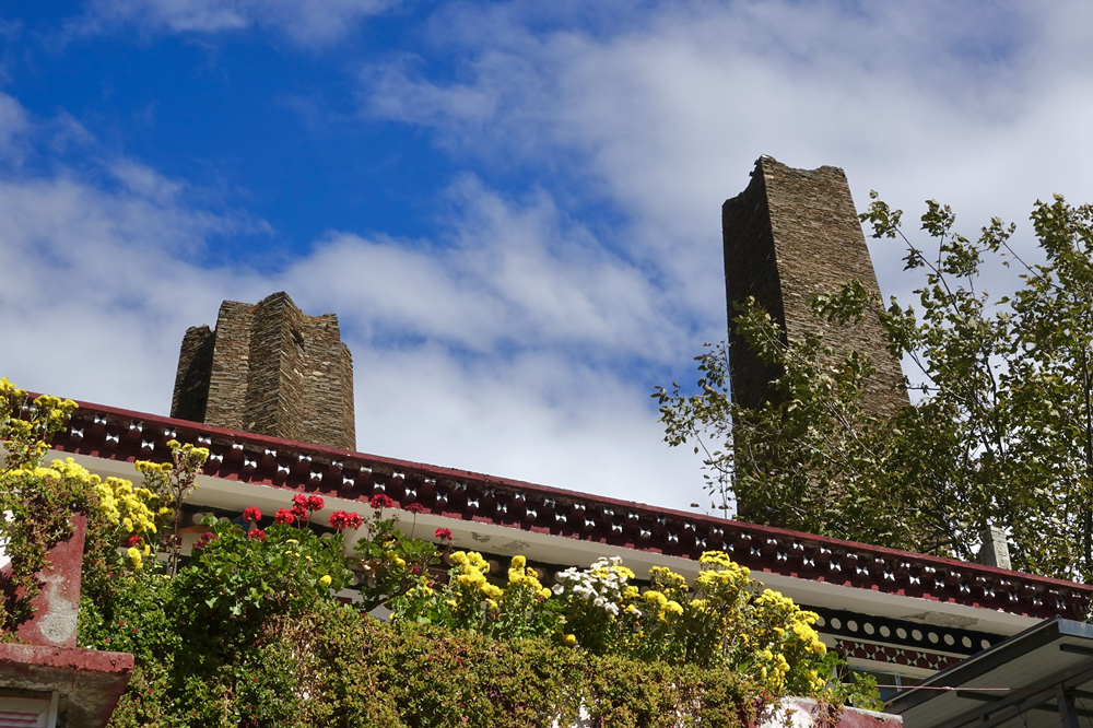 在它的后面三個碉樓特別吸引眼球。左邊第一座是五角碉,第二座是八角碉,第三座是常見的四角碉。李仁奇 攝