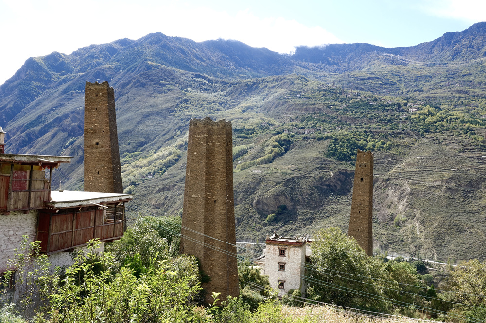在它的后面三個碉樓特別吸引眼球。左邊第一座是五角碉,第二座是八角碉,第三座是常見的四角碉。李仁奇 攝