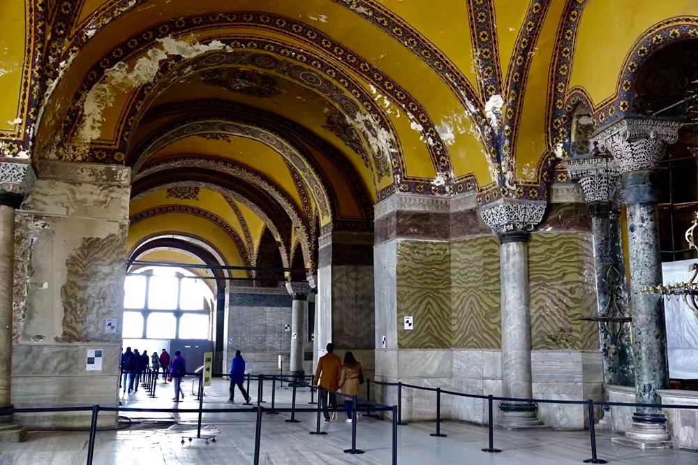 圣索菲亞大教堂內(nèi)部有140根巨大石柱,由于是從不同地方運(yùn)來的,因此石料色彩不一,有些是紫色,有些又是綠色。李仁奇 攝