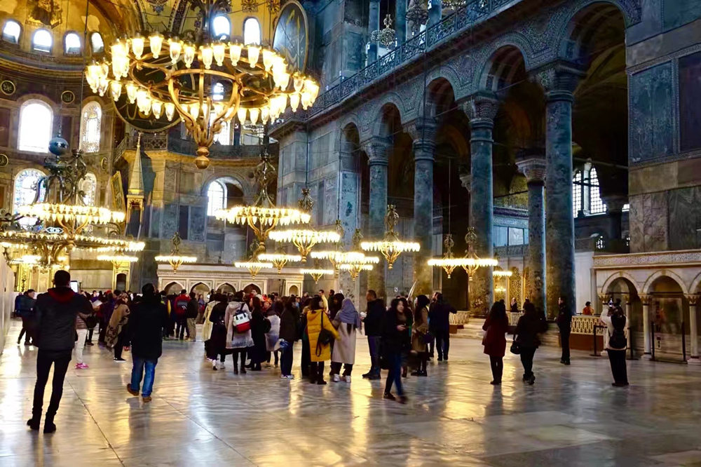 1935年,第一任土耳其總統(tǒng)、土耳其國(guó)父穆斯塔法·凱末爾·阿塔圖爾克下令將圣索菲亞大教堂變?yōu)椴┪镳^。覆蓋在鑲嵌畫上的灰漿由專家煞費(fèi)苦心地擦去,地面飾品得以展示。改名后的阿亞索菲拉博物館實(shí)際上的展品主要就是建筑物自身以及其中的鑲嵌畫藝術(shù)品。李仁奇 攝