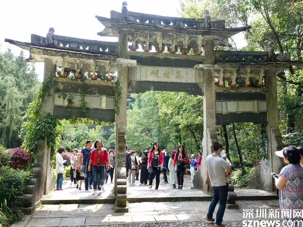 蝴蝶泉水清澈如鏡,水石相映,樹影搖晃。西壁上方鐫刻著郭沫若題寫的“蝴蝶泉”三個(gè)大字。池邊的蝴蝶樹,猶如一條青龍橫臥于泉池上。李仁奇 攝
