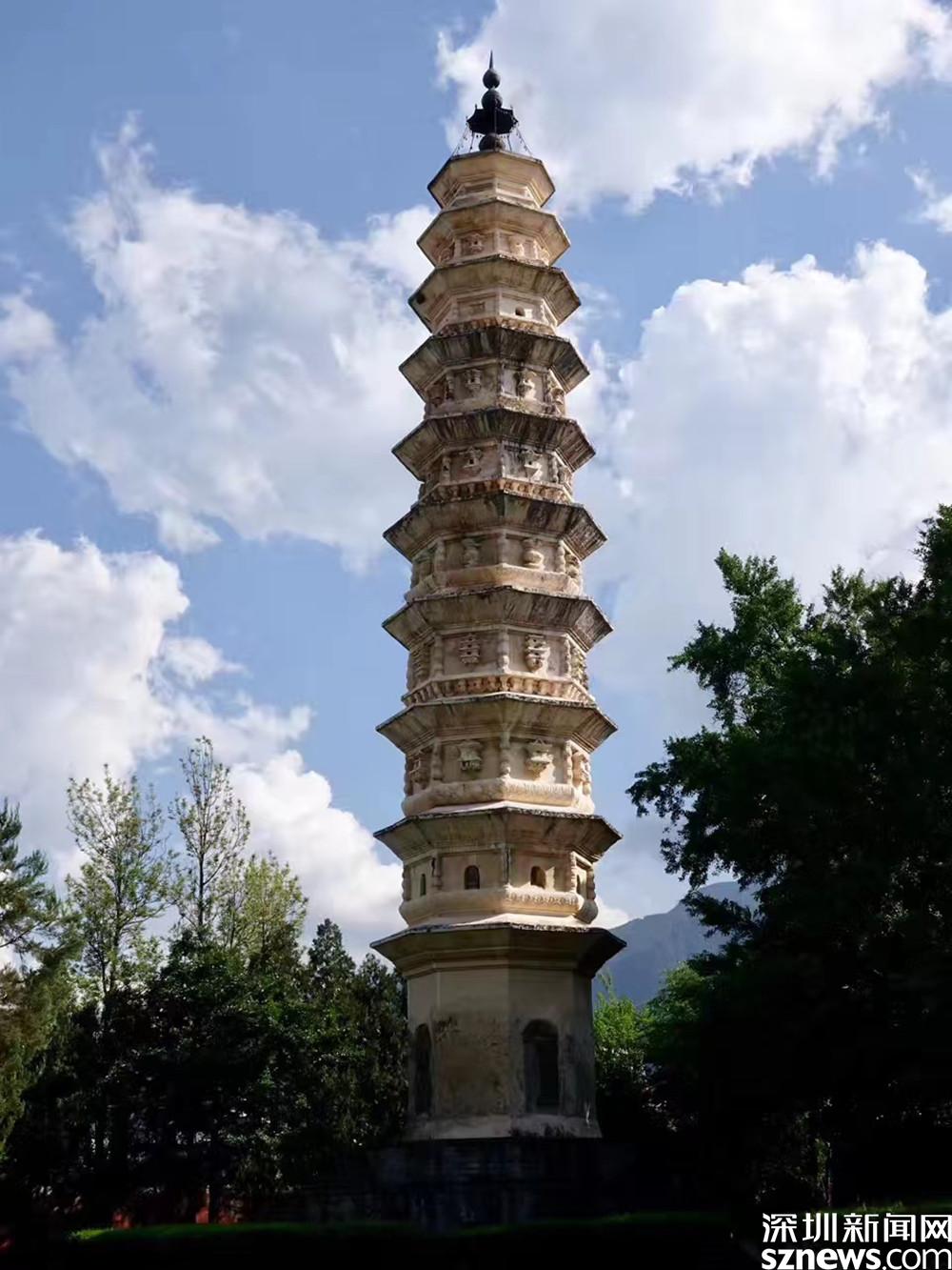 在千尋塔的塔頂四角,原來鑄有4只巨大的金翅鳥,“金翅鳥”又名“大鵬金翅鳥”,為佛教護(hù)法神中的“天龍八部”之一,傳說能鎮(zhèn)水患,后毀于地震。李仁奇 攝
