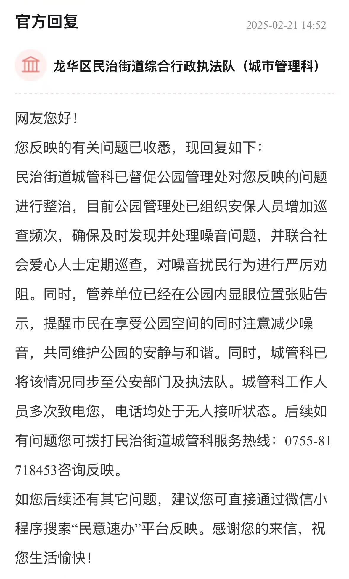 案例點評:街道以“即時處置+源頭預防”雙軌并進:安保巡查形成震懾,警示標識強化行為引導,多部門聯(lián)動執(zhí)法。不過,噪音問題易反彈,也限制了市民業(yè)余活動,建議后續(xù)建立長效管理機制,如分時段音量管控、智能化監(jiān)測設(shè)備等,將“柔性引導”與“剛性約束”結(jié)合,切實守護鬧靜皆宜的公共空間秩序。