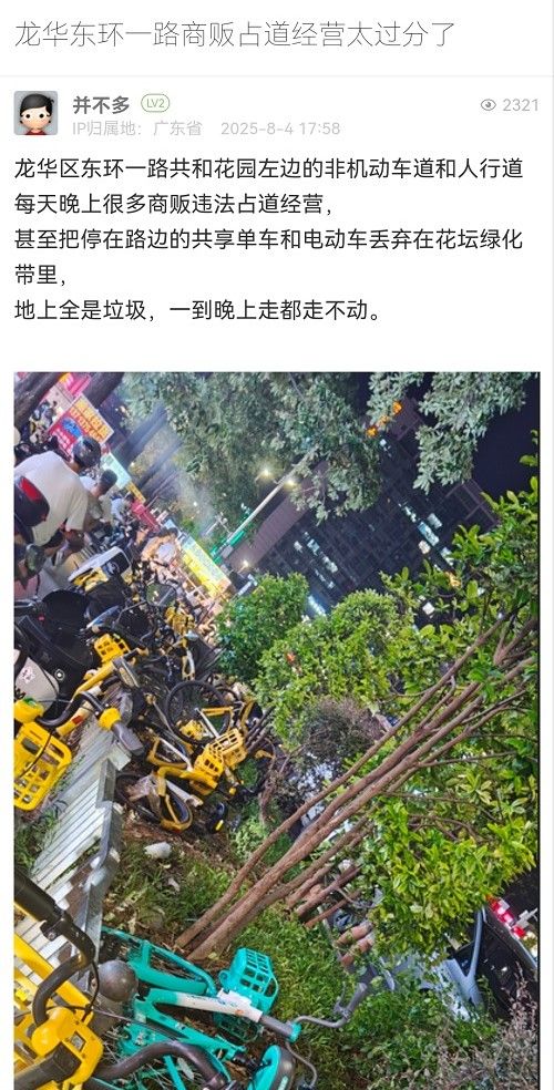 3. 帖文《龍華東環(huán)一路商販占道經(jīng)營(yíng)太過(guò)分了》