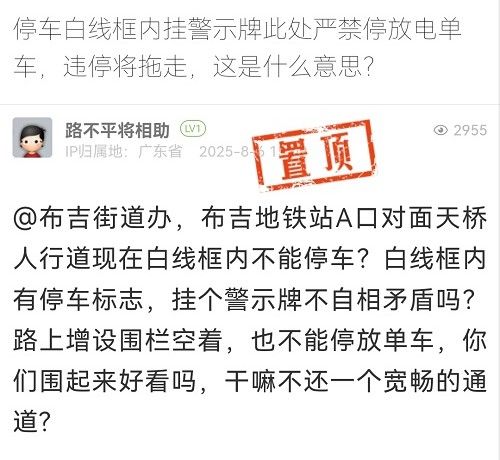 針對(duì)市民提及“白線框內(nèi)有停車(chē)標(biāo)志,掛個(gè)警示牌不自相矛盾嗎?”的問(wèn)題。經(jīng)核實(shí),市民提及的問(wèn)題處已被規(guī)劃為不可停放區(qū)域,禁停標(biāo)識(shí)及鐵馬圍擋是為清除白線框施工而設(shè)置的臨時(shí)空間預(yù)留措施,對(duì)此給市民帶來(lái)的誤解以及不便,我們深表歉意。目前該處白線停車(chē)框及禁停標(biāo)識(shí)已一并清除。