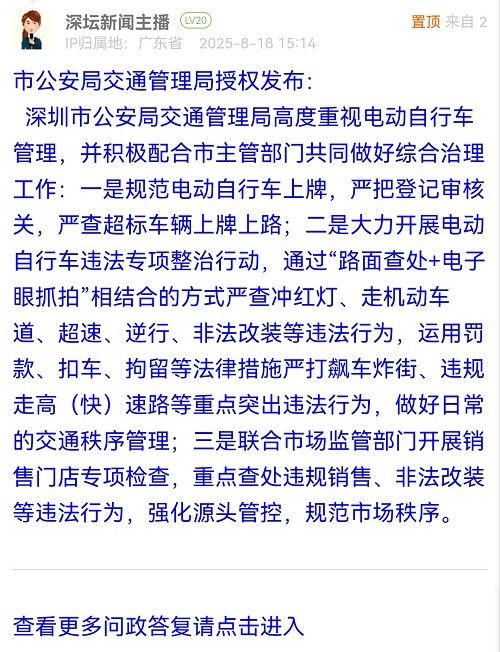 據(jù)統(tǒng)計(jì),2025年8月11日-2025年8月17日,網(wǎng)友在深圳論壇發(fā)布問政類帖文共31篇,得到相關(guān)單位正式回應(yīng)的帖文數(shù)為31篇,本期簡報(bào)回應(yīng)速度最快的單位:市市場(chǎng)監(jiān)督管理局光明監(jiān)管局、福田交通局、龍華區(qū)民治街道辦事處、南山區(qū)南頭街道辦事處、市公安局交通管理局龍崗大隊(duì)、龍崗區(qū)衛(wèi)生健康局、南山區(qū)城市管理和綜合執(zhí)法局、福田區(qū)梅林街道辦事處、羅湖區(qū)蓮塘街道辦事處。