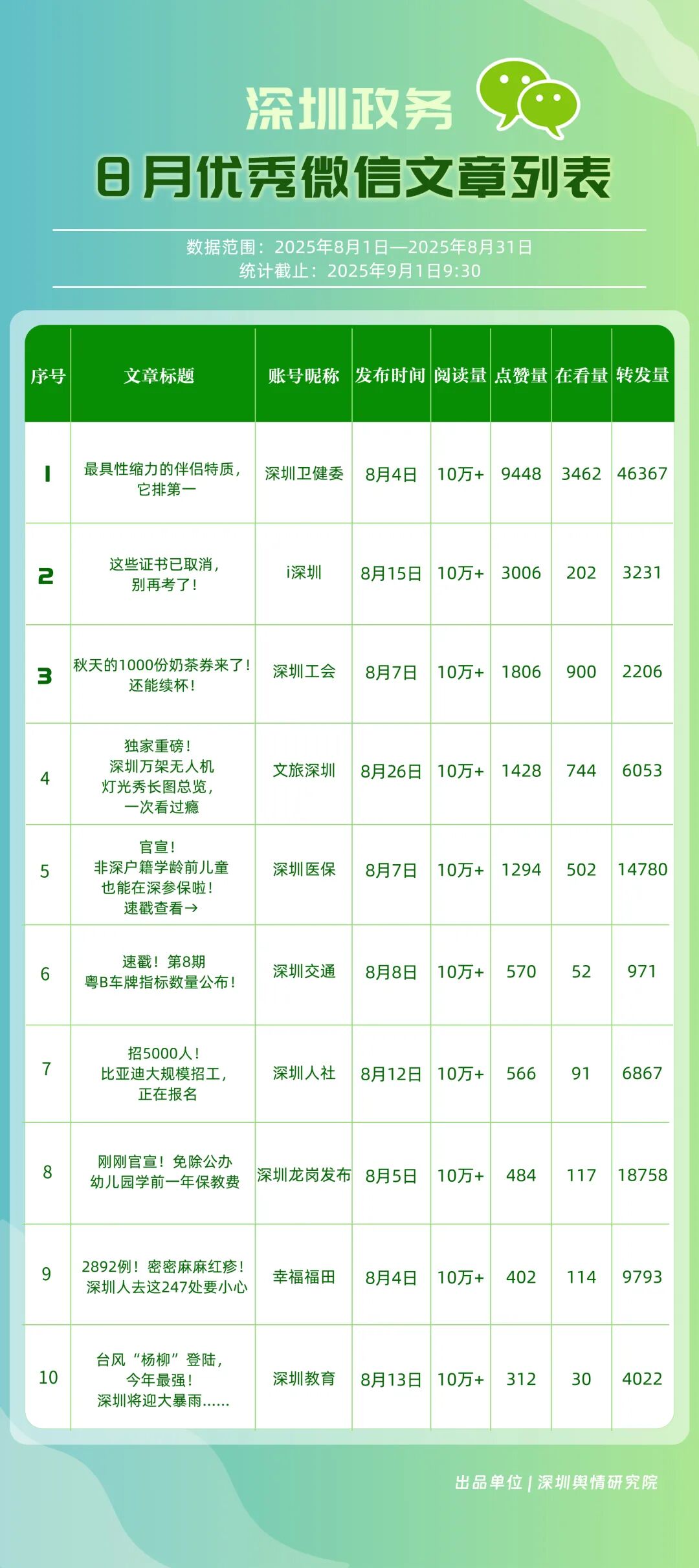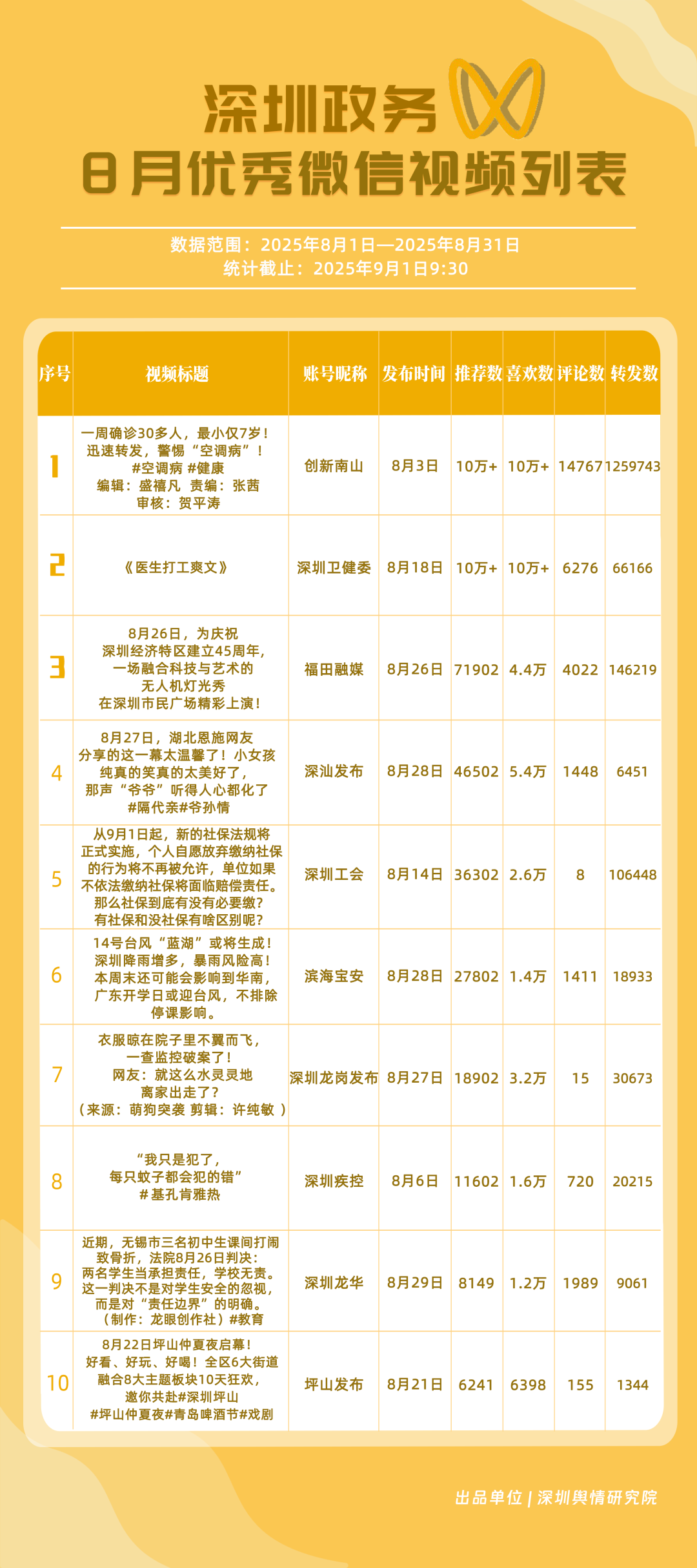 7區(qū)新媒體矩陣上榜!8月“深圳優(yōu)秀政務新媒體矩陣”榜單邀您關注!